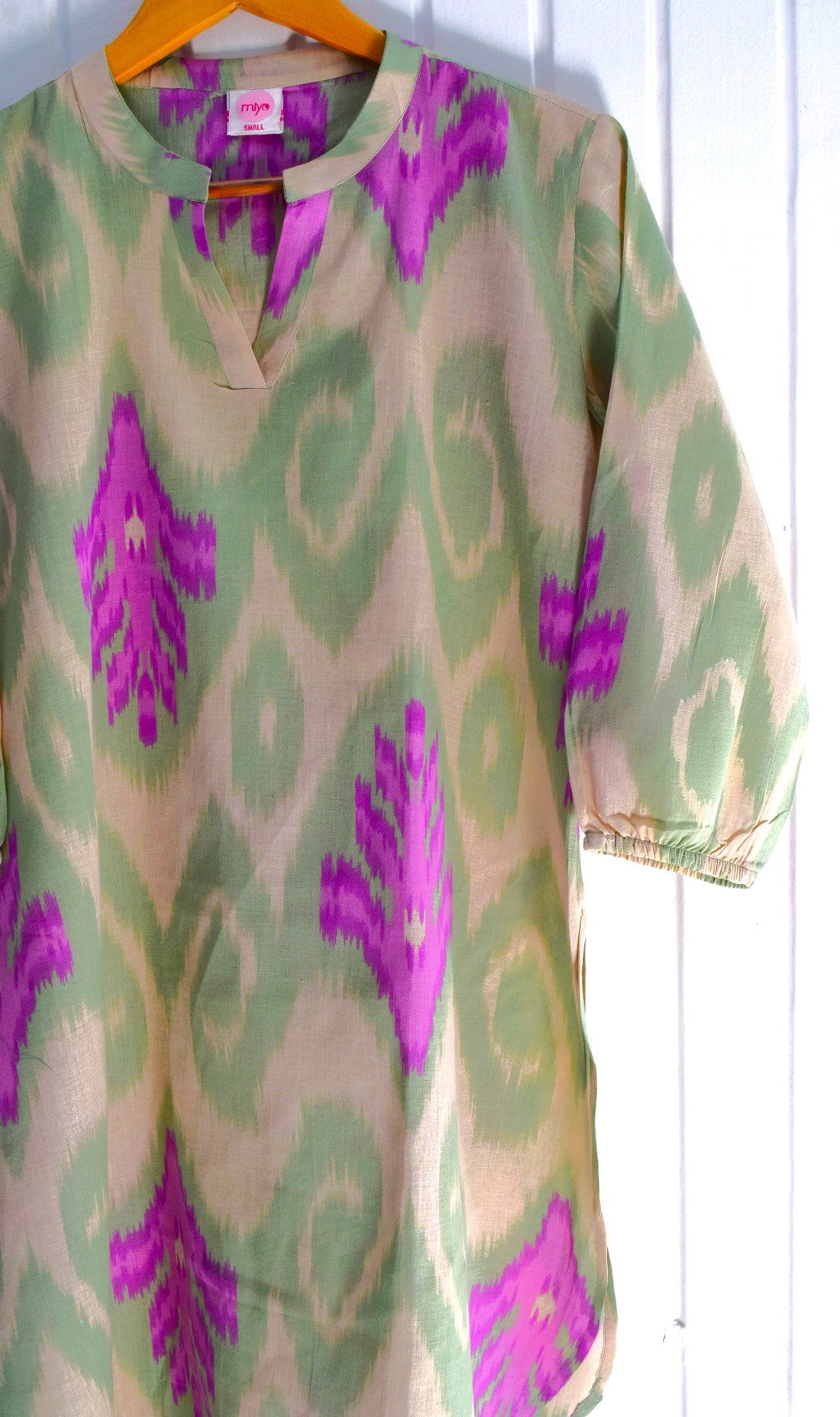 Elegant Ikat Print Cotton Linen Loungewear Set