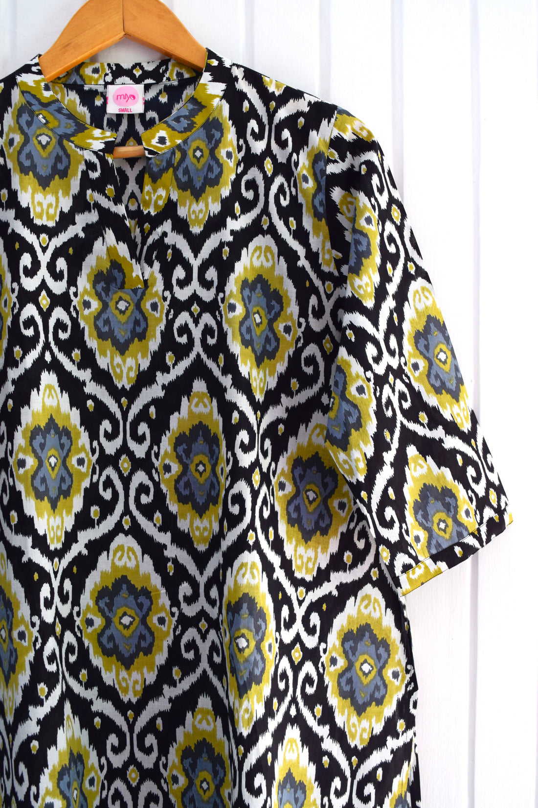 Step into comfort and elegance with our Vibrant Ikat Print Cotton Loungewear Set. Made from...