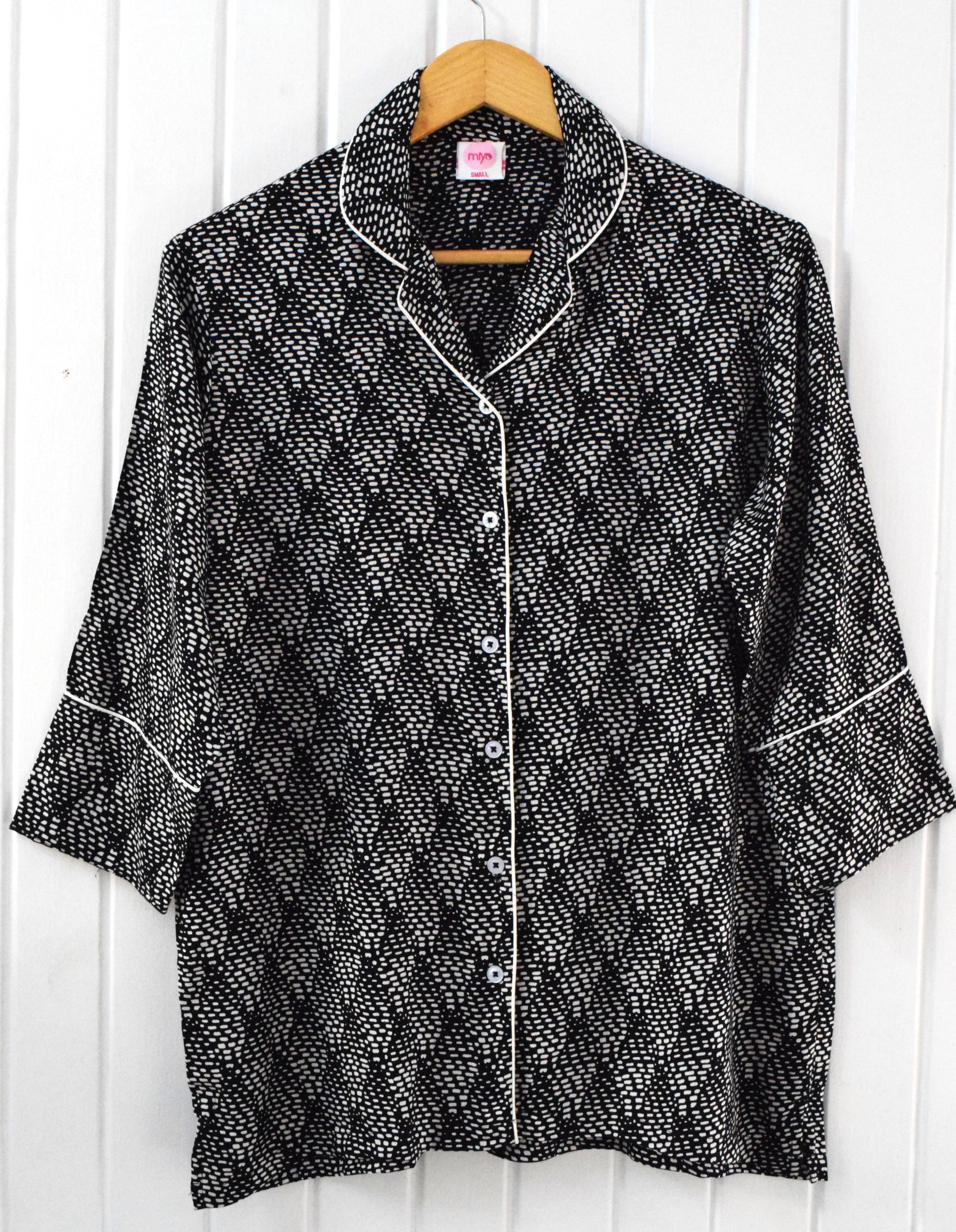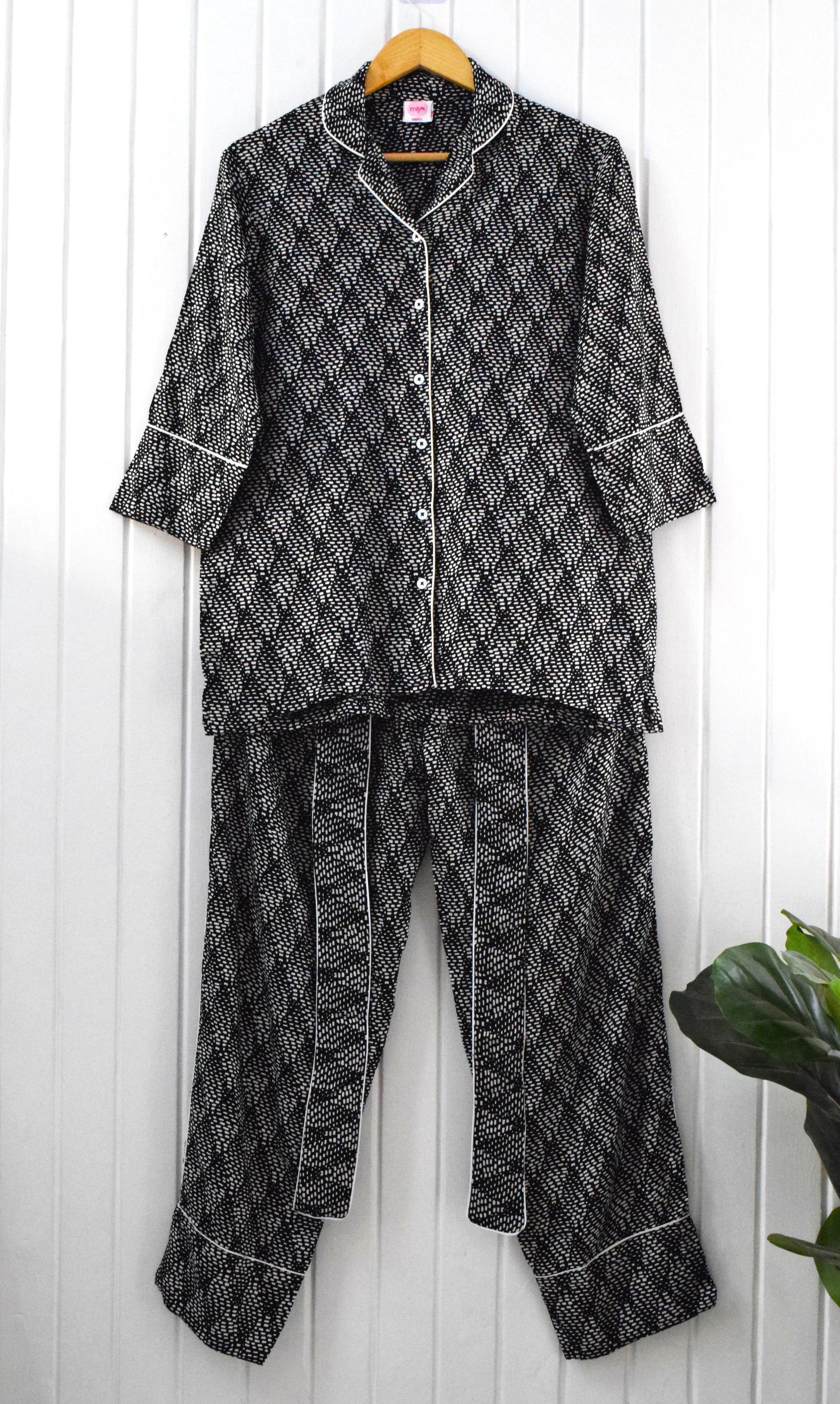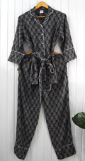 Slip into timeless elegance with our Black and White Belted PJ Set. Designed for both style and comfort, this set features premium cotton fabric, a relaxed fit, and a chic belted waist for a flattering silhouette. Perfect for lounging, sleeping, or cozy evenings at home.