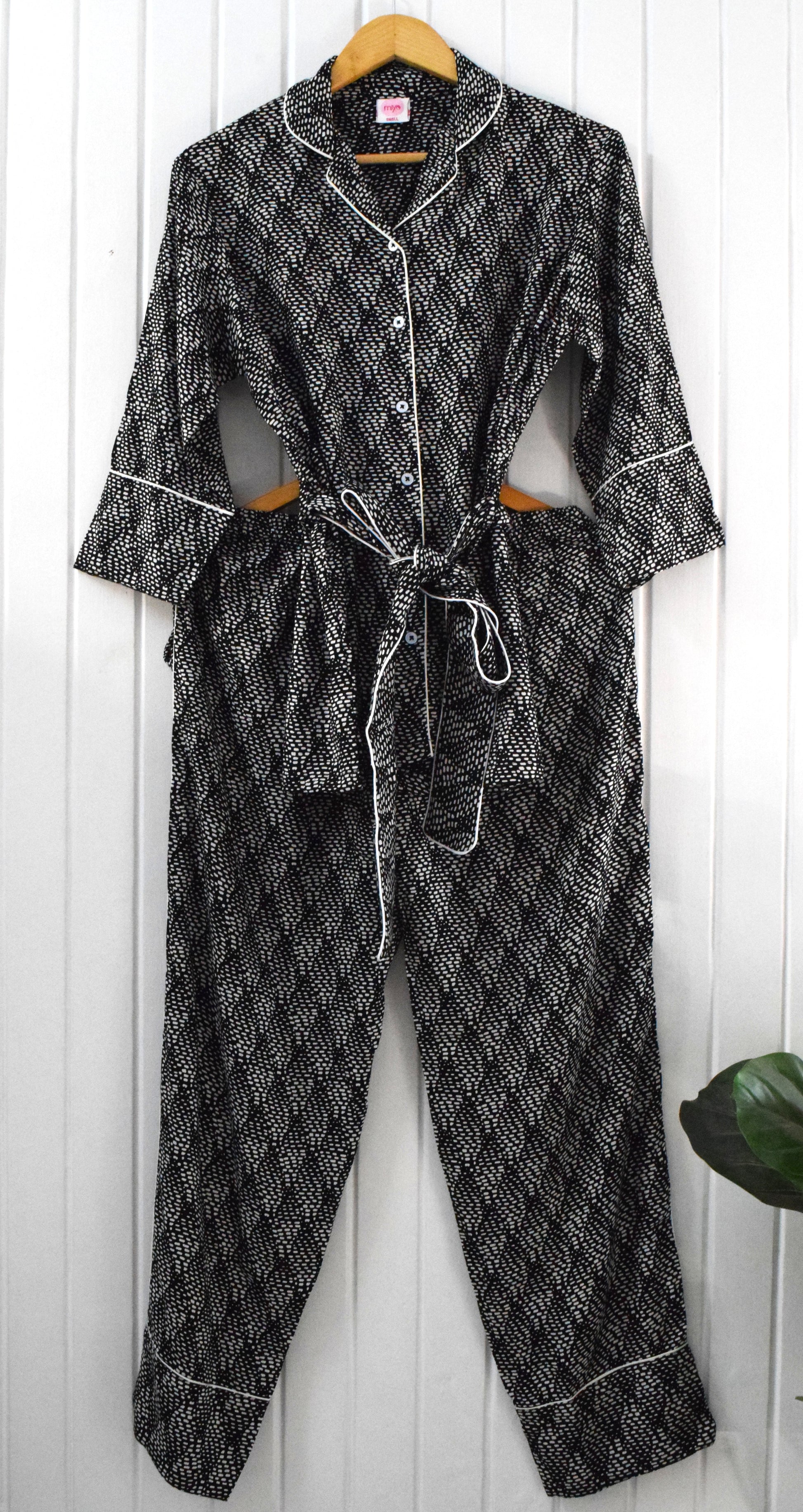 Black and White Belted PJ Set