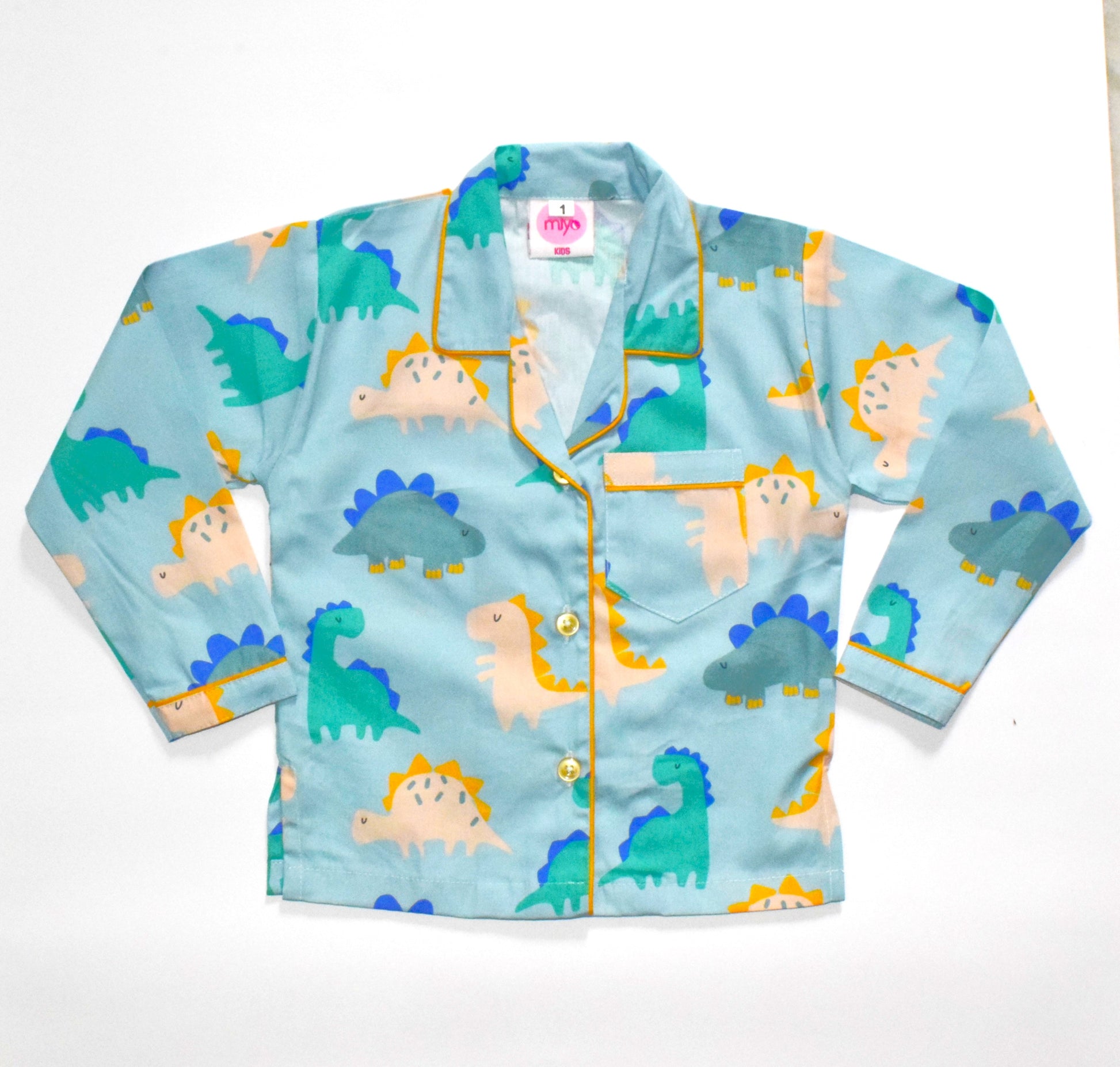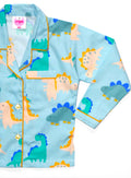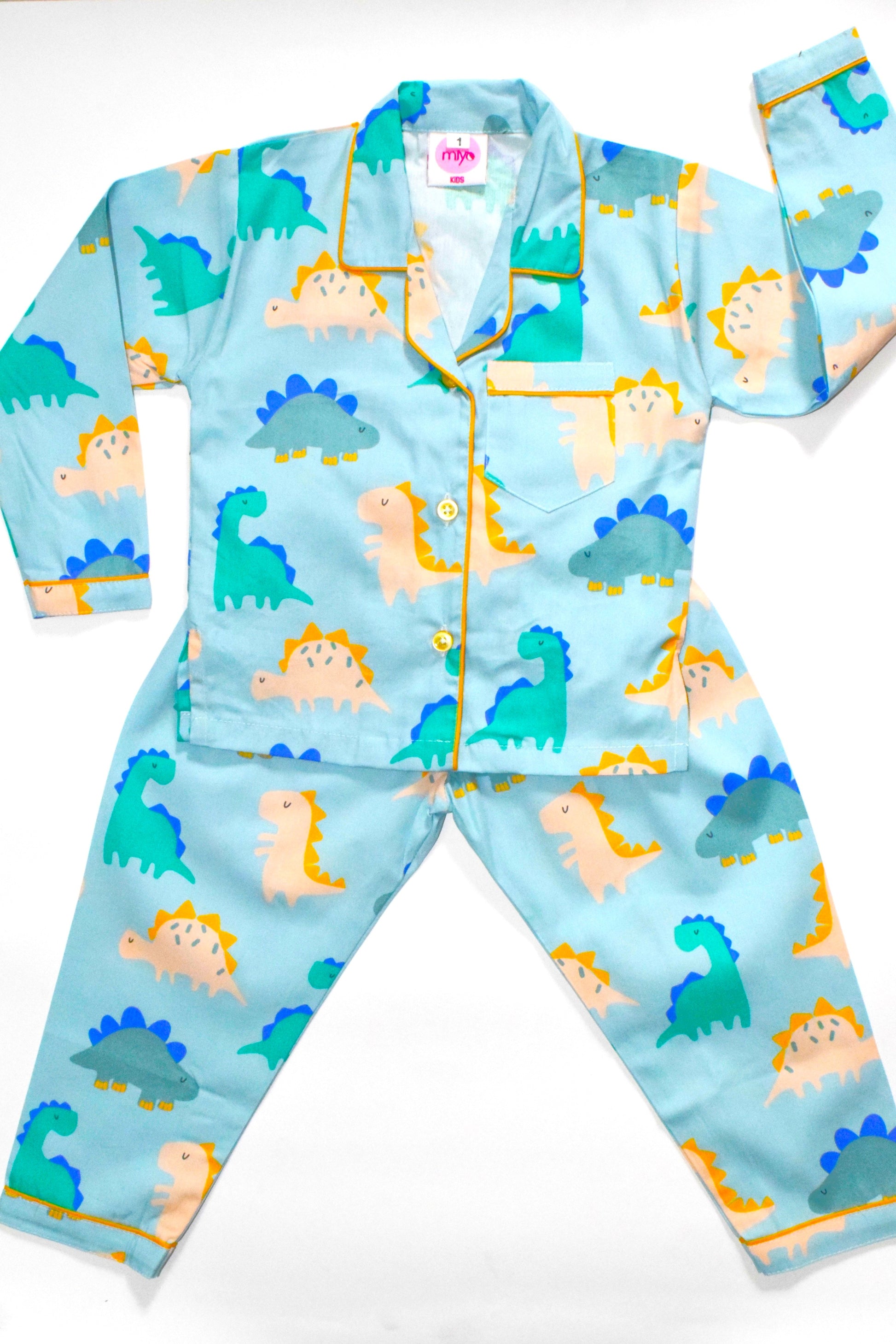 Make bedtime fun and cozy with this adorable Blue Dino Print Cotton Nightsuit for Kids. Crafted from soft and breathable 100% cotton, this kids' nightwear ensures ultimate comfort and a restful night’s sleep. Featuring a playful dinosaur print on a soothing blue background, this cotton nightsuit is perfect for little dino lovers. Designed with a relaxed fit and skin-friendly fabric, it’s ideal for sleeping, lounging, or pajama parties. This durable cotton nightwear for kids is easy to maintain and perfect for year-round wear. Add a touch of charm and comfort to your child’s wardrobe with this delightful nightsuit for kids.