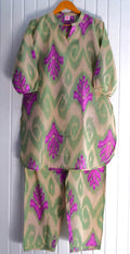 Relax in effortless style with our Elegant Ikat Print Cotton Linen Loungewear Set. Designed for comfort and sophistication, this breathable and soft cotton-linen blend offers a relaxed fit, making it perfect for lounging, casual wear, or work-from-home outfits. The beautiful Ikat-inspired pattern in soothing pastel hues adds a touch of ethnic charm, making it a stylish yet comfortable choice.