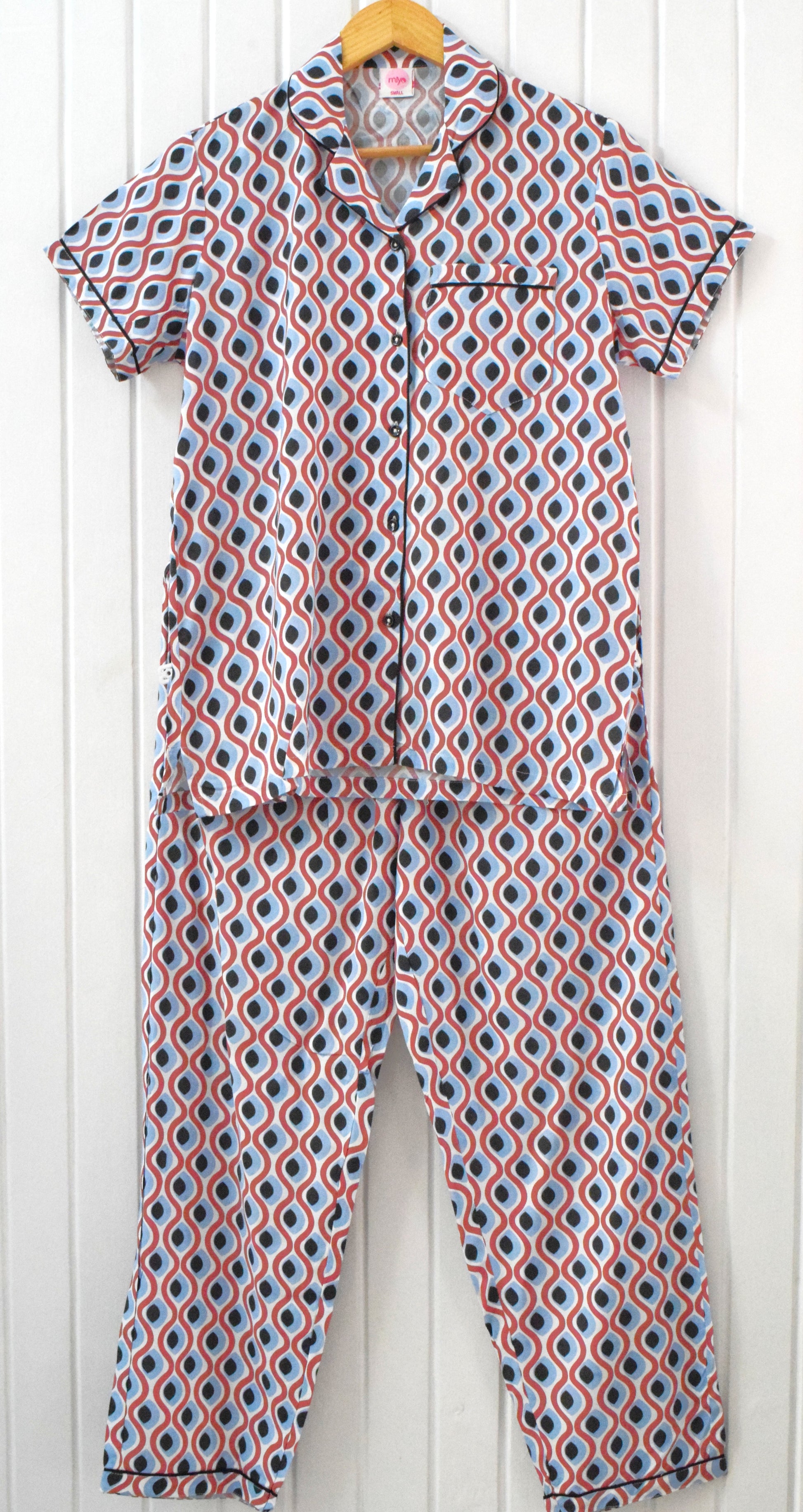 Wrap yourself in comfort and protection with our Evil Eye Comfort PJ Set! Designed with a mesmerizing evil eye pattern, this set is not only stylish but also symbolizes good luck and warding off negativity. Made from a breathable rayon-cotton blend, it ensures a soft and cozy feel for all-night relaxation.