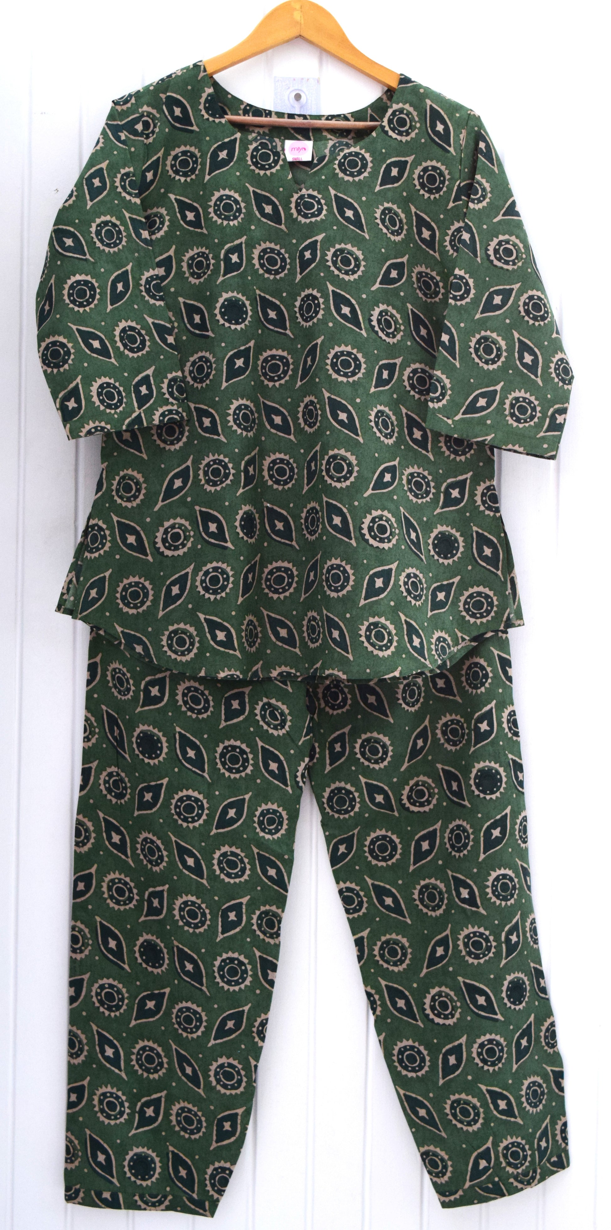 Experience the perfect blend of comfort and tradition with our Jaipuri Heritage Cotton Loungewear Set. Made from 100% authentic Jaipuri cotton, this breathable and lightweight set keeps you cool and cozy all day long. The rich green hue with intricate beige motifs adds an elegant ethnic touch, making it an excellent choice for lounging or casual outings.
