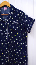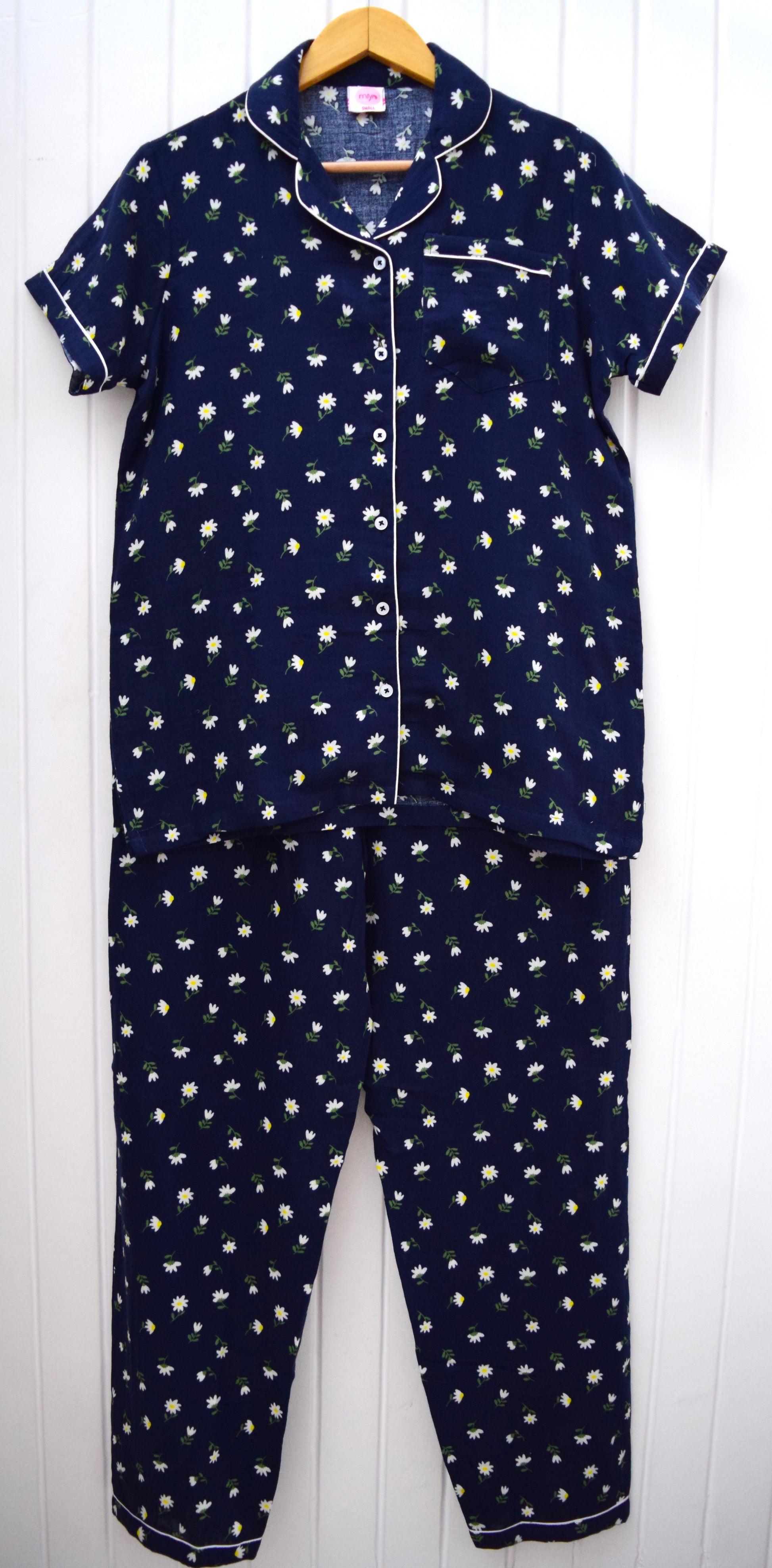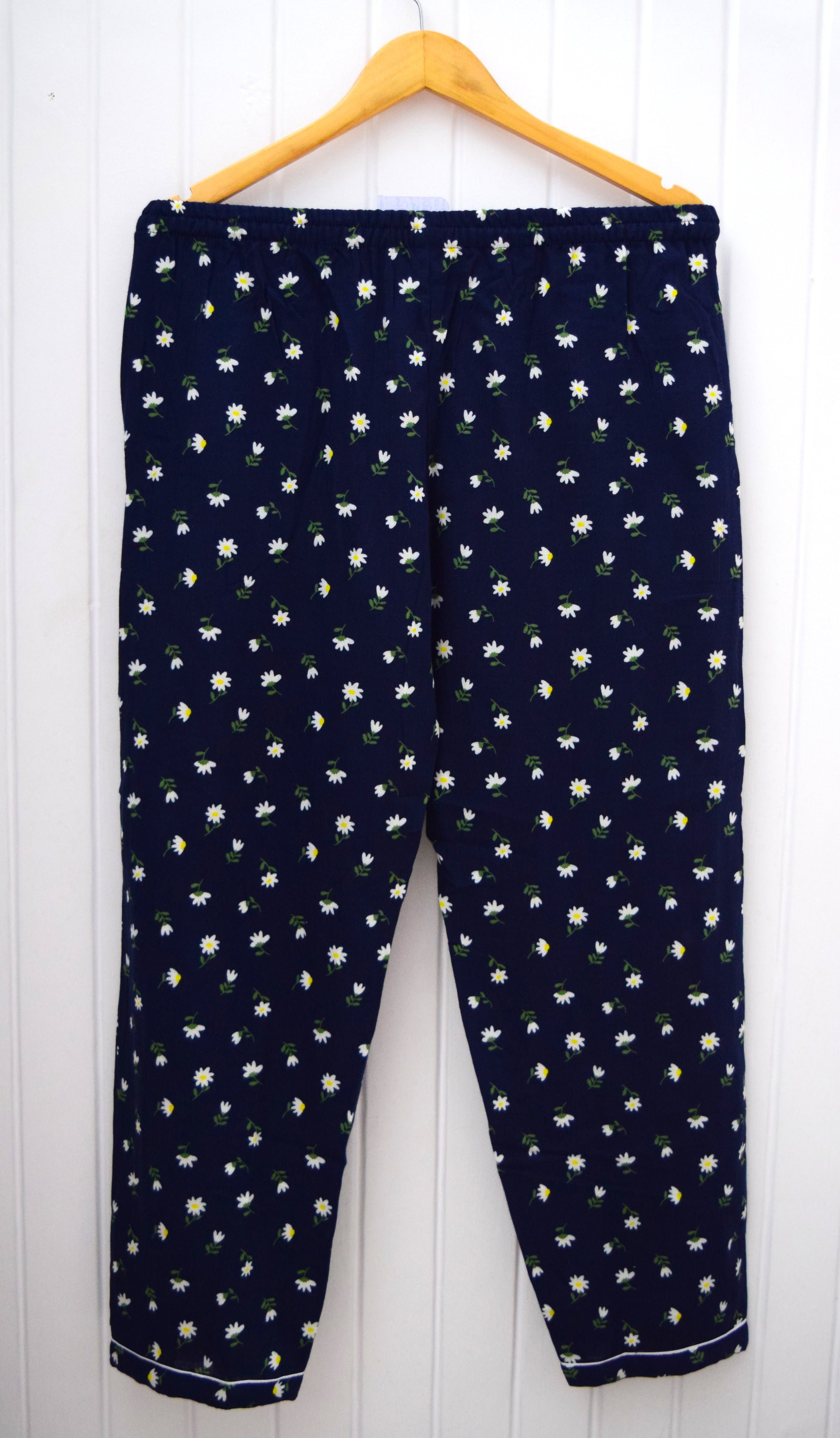 Drift into dreamland with our Midnight Bloom Pajama Set, designed for ultimate comfort and style. Crafted from a soft cotton fabric, this breathable set keeps you cool while giving off a charming floral aesthetic. The deep navy blue base is adorned with delicate white daisies, making it a perfect pick for effortless elegance even at bedtime!