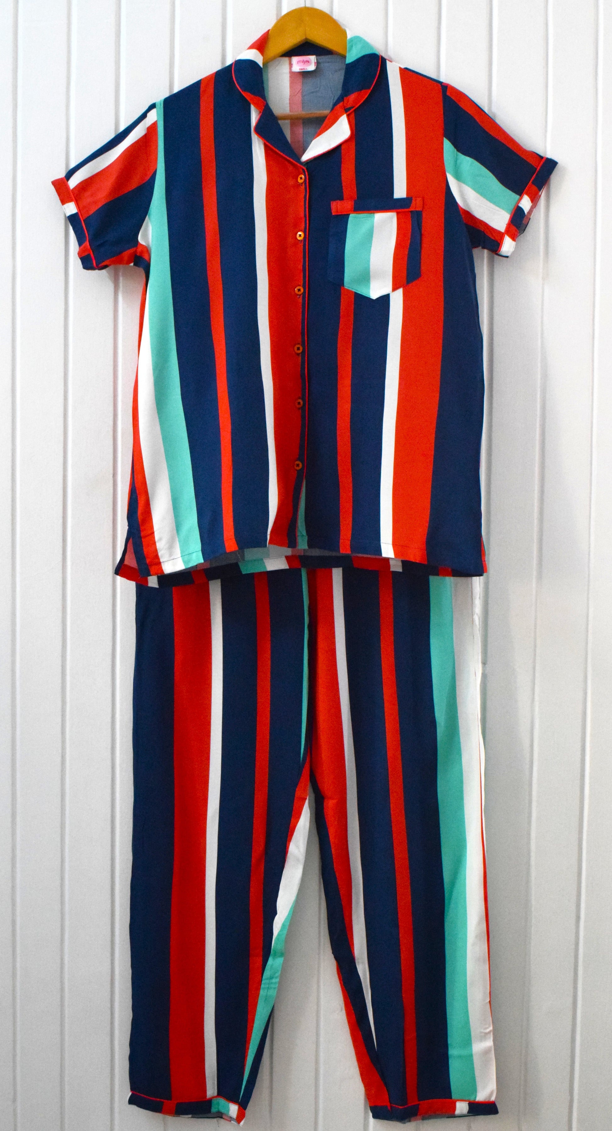 Multi Colour Stripes Rayon Cotton PJ Set