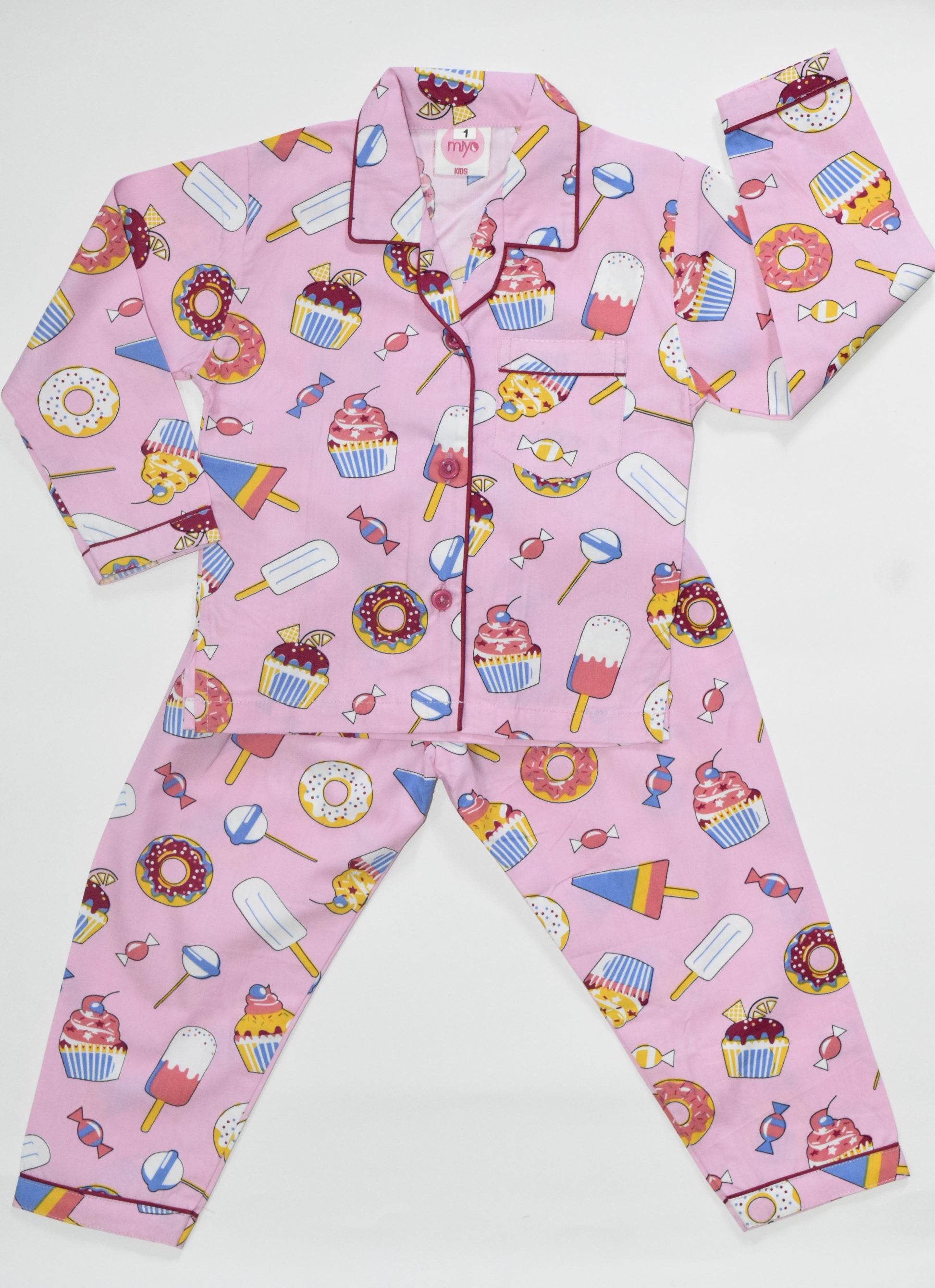 Add a sprinkle of sweetness to bedtime with this Pink Donut Print Flannel Nightsuit for Kids. Crafted from soft and cozy flannel fabric, this kids' nightwear ensures warmth and comfort, perfect for chilly nights. The playful donut and candy print make it a delightful choice that kids will adore. Designed for a relaxed fit, this flannel nightsuit provides ease of movement, making it ideal for both sleeping and lounging. Durable, breathable, and easy to maintain, this flannel nightwear for kids combines fun style with functional design, making it a must-have for your child’s nightwear collection!