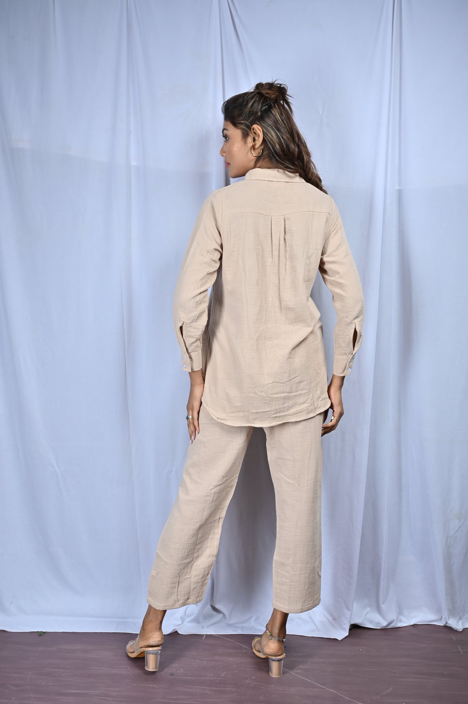 Elevate your daily style with our versatile coordset, designed for both comfort and flair. Perfect for running errands, casual meet-ups, or simply relaxing in style, this set combines contemporary fashion with everyday practicality. This is made out of Cotton Crush Fabric with elasticed wasit band and pockets in the pants to provide an extra ease and comfort .