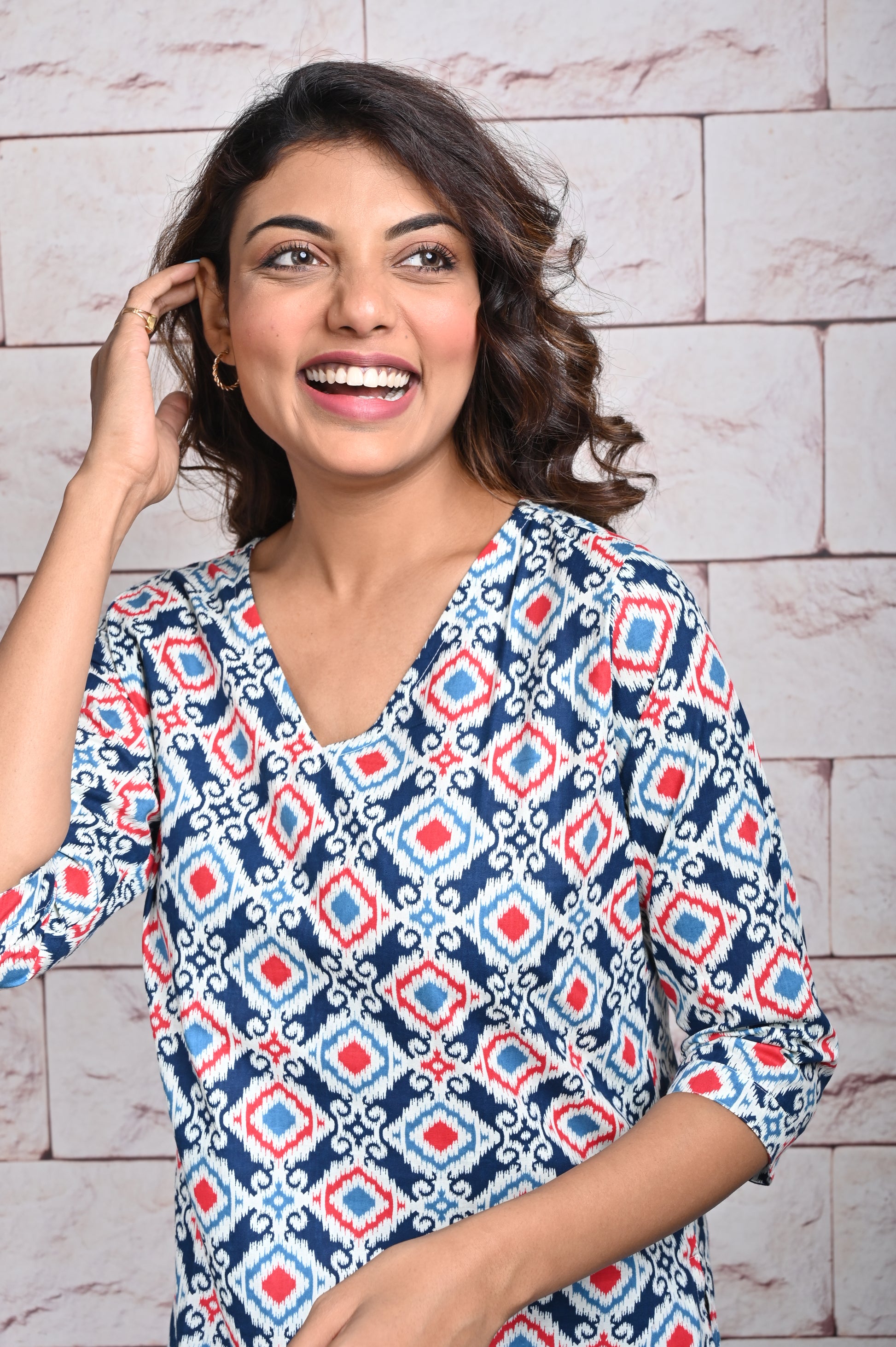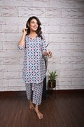 Red Blue Ikkat Cotton Loungewear Set