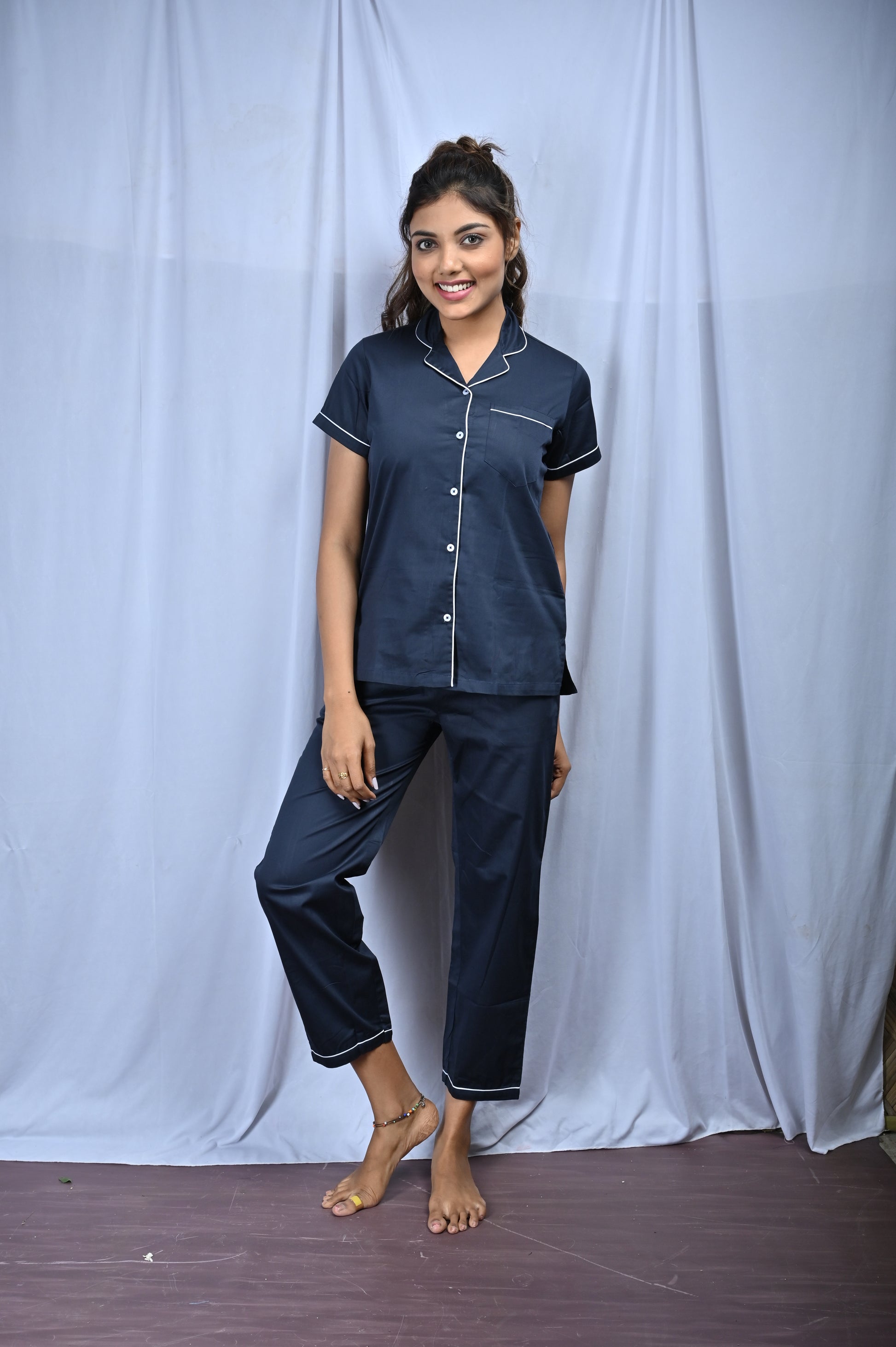 Discover the ultimate in comfort and elegance with our Cotton Satin Nightwear, designed for those who appreciate the finer things in life. Crafted from a luxurious blend of cotton and satin, this nightwear offers a silky smooth feel against the skin while ensuring breathability and softness. It comes with an elasticed waist band and pockets in the pyjamas for that extra ease .