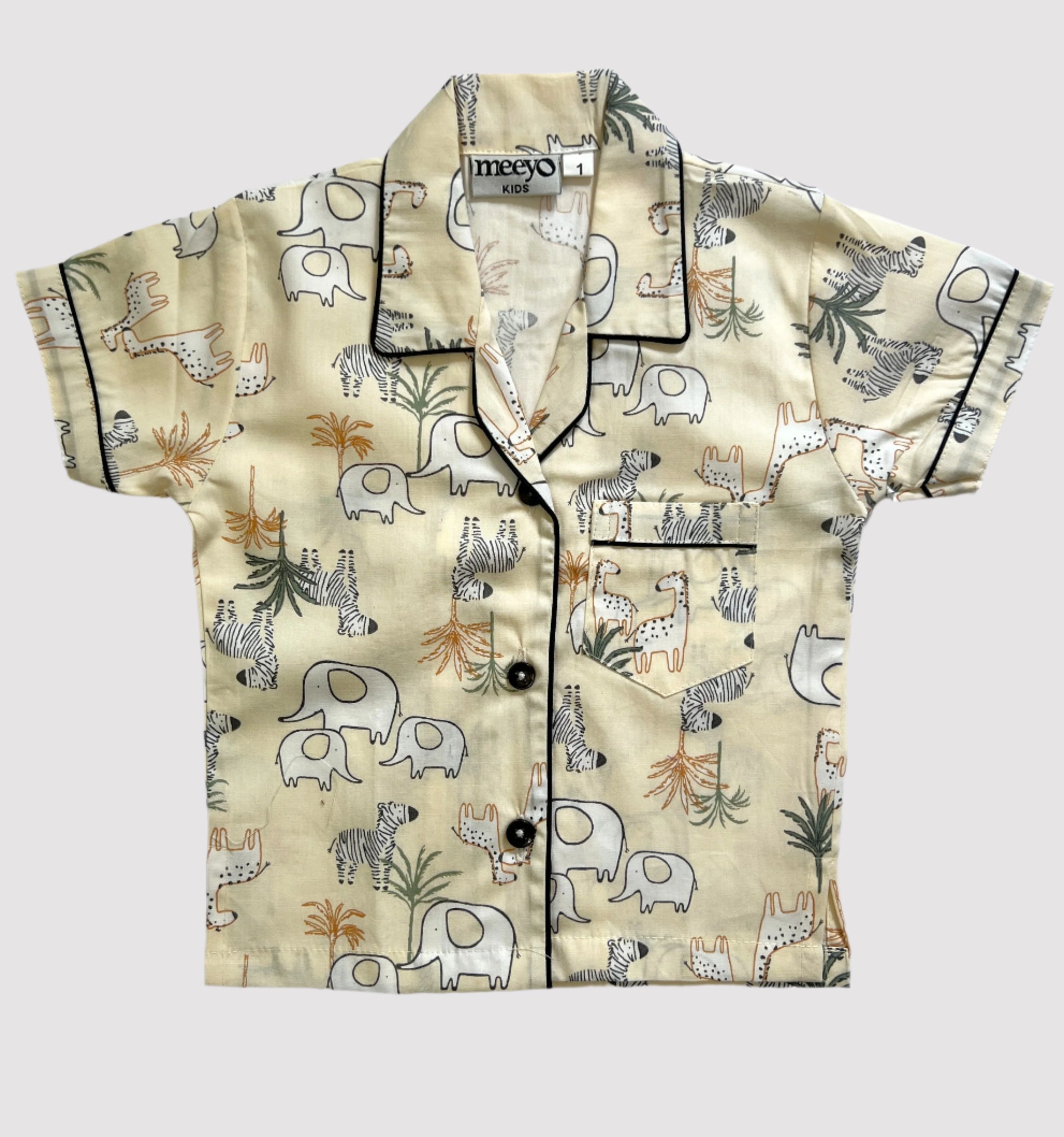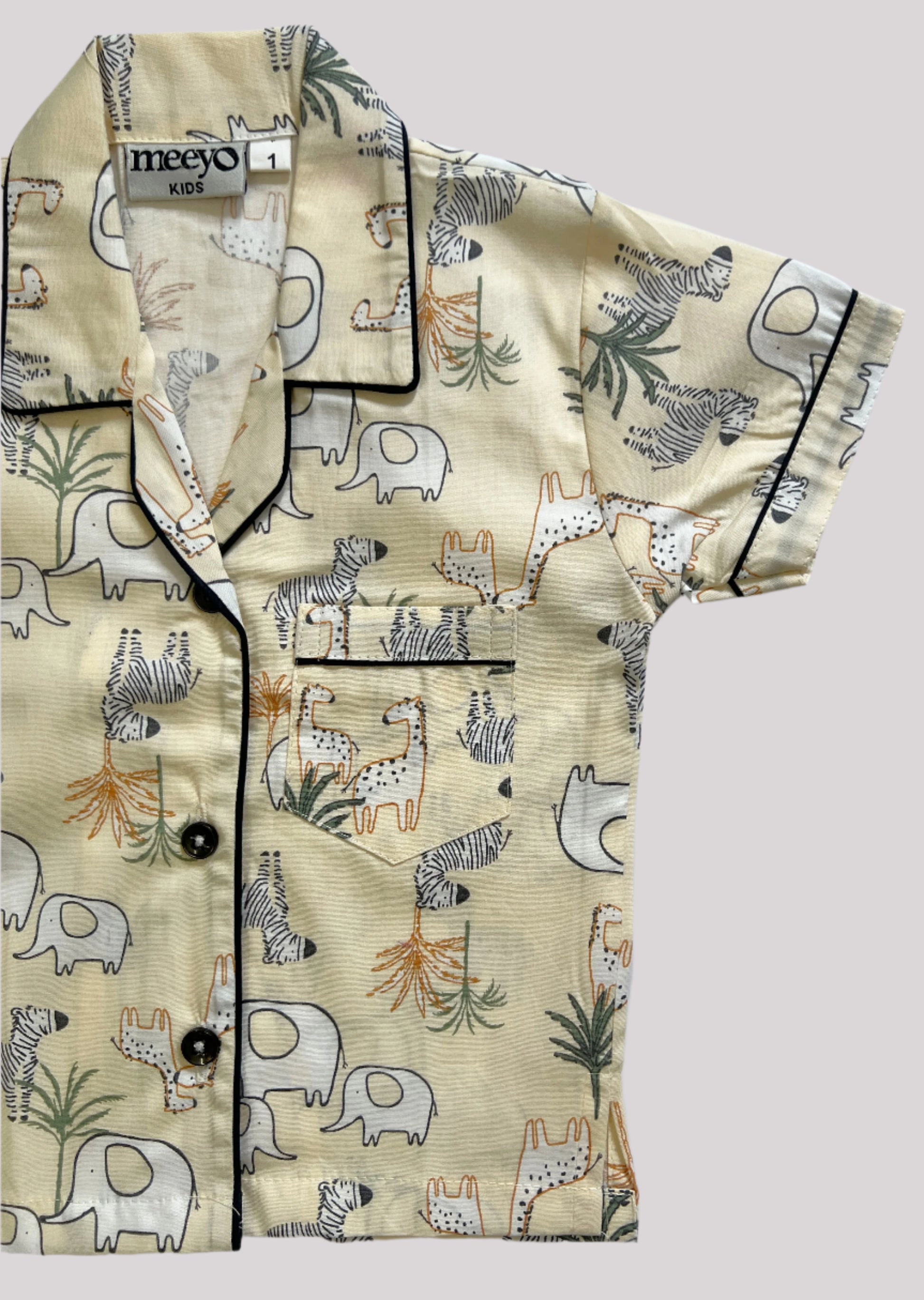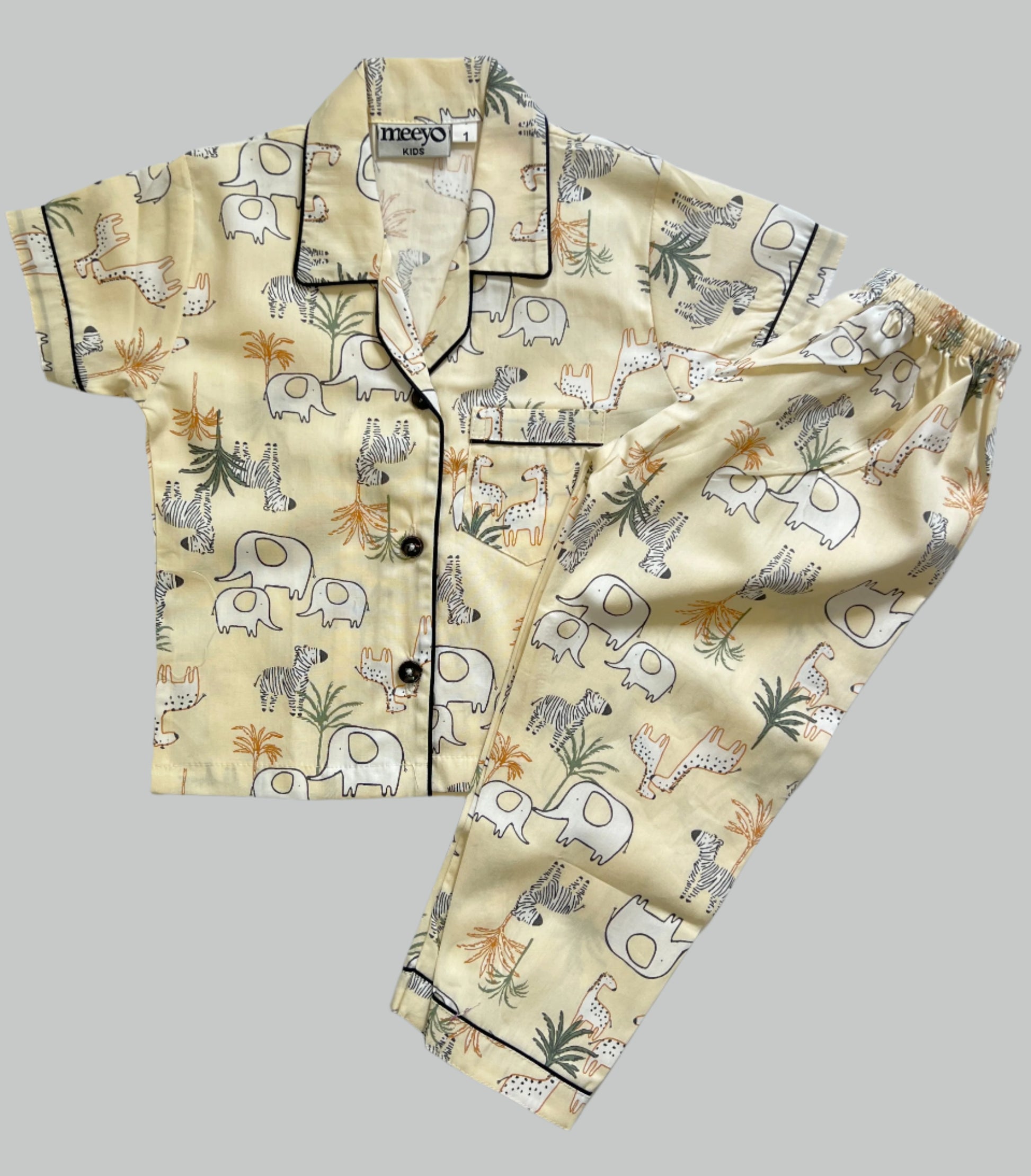 Bring the magic of the wild to your child’s bedtime with the Yellow Animal Print Kids Cotton Nightwear PJ Set. Made from premium cotton, this delightful nightwear set features charming animal prints including elephants, zebras, giraffes, and more – perfect for adventurous little dreamers. The soft, breathable fabric ensures a cozy and comfortable sleep, making it a must-have for your child’s sleepwear collection.