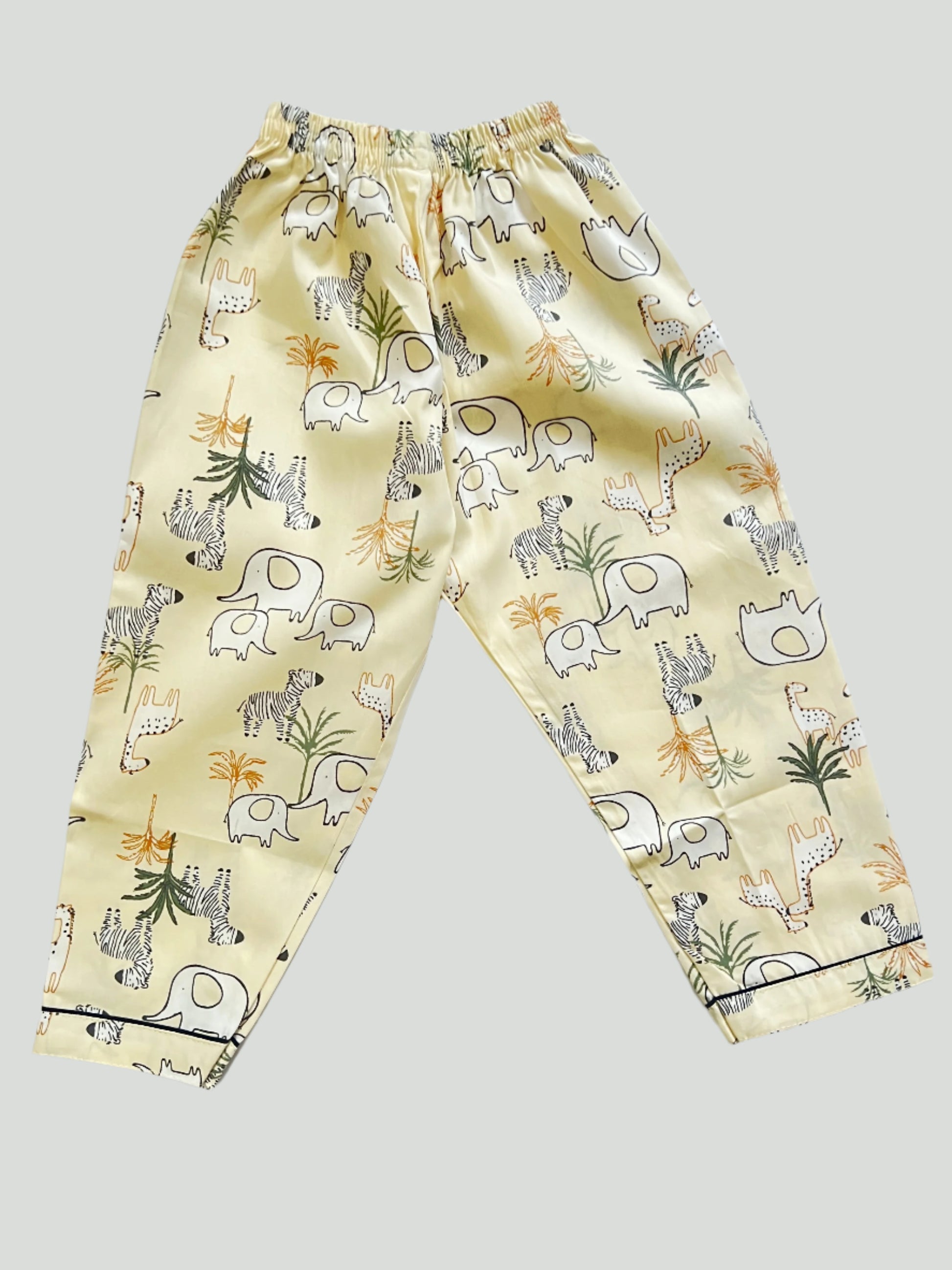 Yellow Animal Print Kids Cotton Nightwear PJ Set